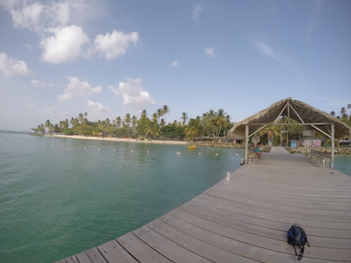 We are dropped off and find the first tiki bar area. We belly up to the bar, ready for a nice cold beverage, to find out the credit card machine was down, and we were all out of cash. Complete Debbie downer. This is why it is good to always have both cash and credit abroad. Thank goodness the setting was pretty! We walk out onto the jetty to get a better panoramic view of the area. On the jetty we make some local friends and I decide I want to jump off the jetty into the ocean. I try to convince my friend, who was very apprehensive, but she wouldn’t take part in my thrill seeking adventure (first time around). Our new friends say it is fine to jump in, even though there is a sign that says …