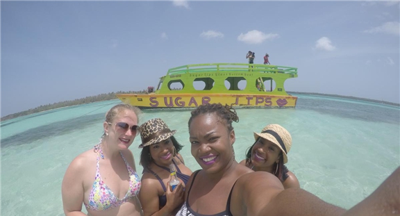 This was a little piece of land where different tours would dock and cook their food. There was a DJ right in the middle of everything keeping the party going. There are no chairs, so be prepared to lay your towel down for a picnic lunch, or an afternoon siesta. They passed out plastic plates, that they may have brought from home, seeing as they all were different. We ate soon after arriving and the meal was good. There was chicken, fish, hot dogs, and sides to choose from. It felt like we were in Sugar Lip’s backyard having a friendly cookout.